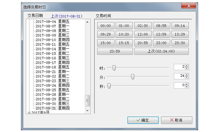 可选历史上的某个时间点开始回放,精确模拟历史行情