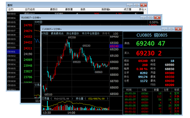 K线图、分时图、闪电图、等量图、盘口信息